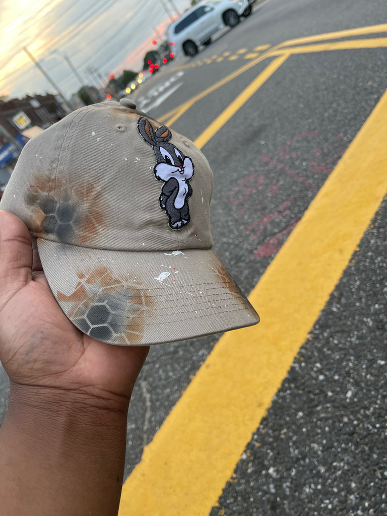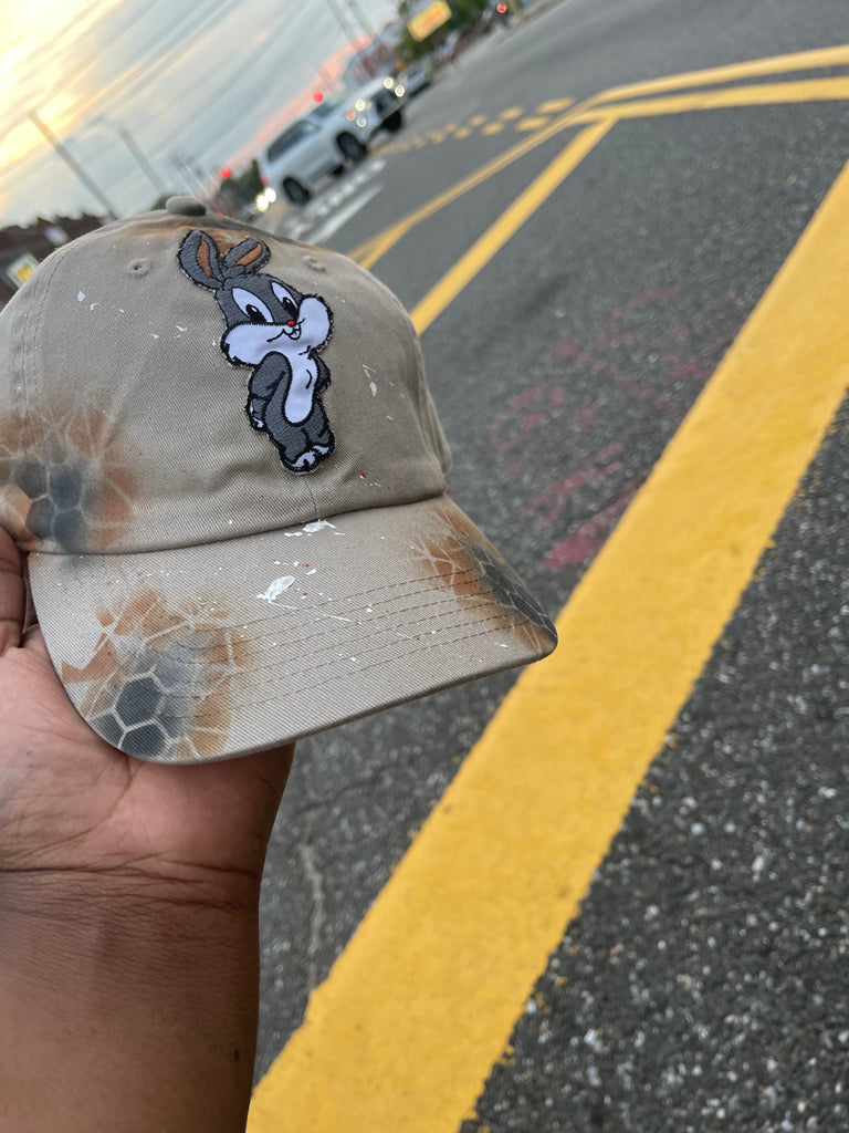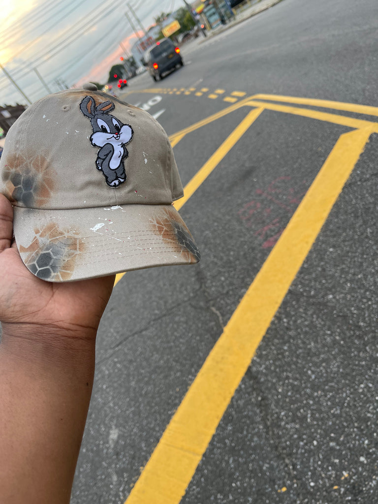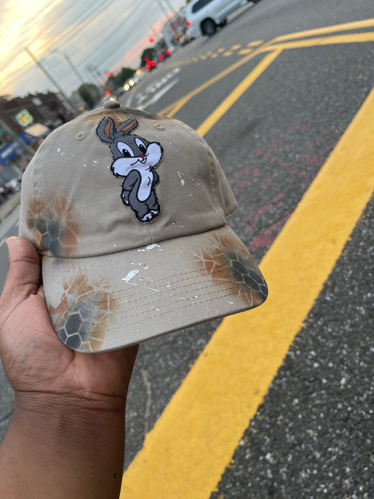 - White , grey , pink ,red and black Small Bugz Bunny patch on front center of cap