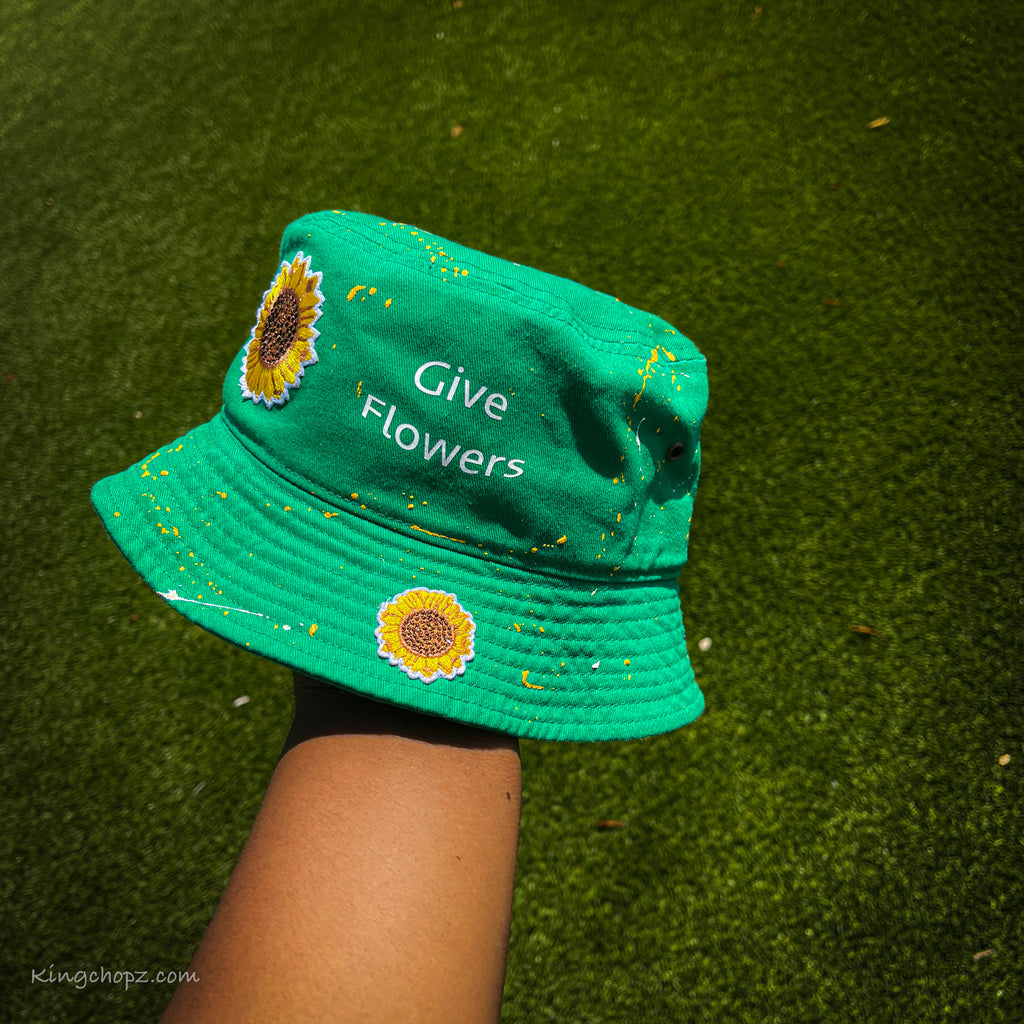 A lot of people that we love go to fast . We need to show more love and not be afraid to be positive. We need to "Give Flowers " add appreciate each other . I made this hat to make people more aware that showin love is not a bad thing .