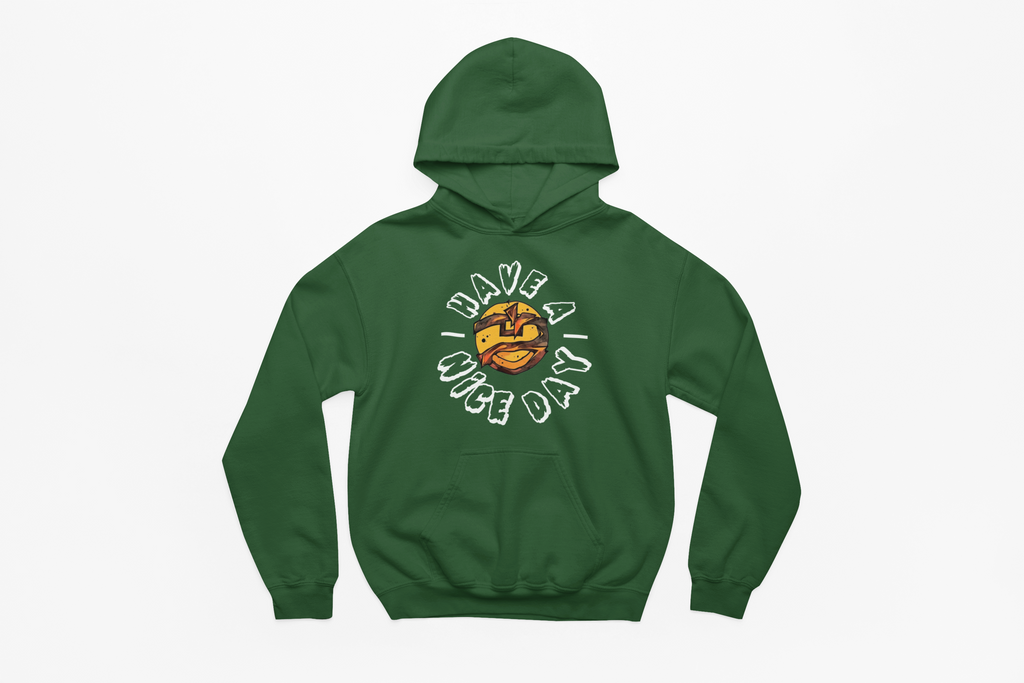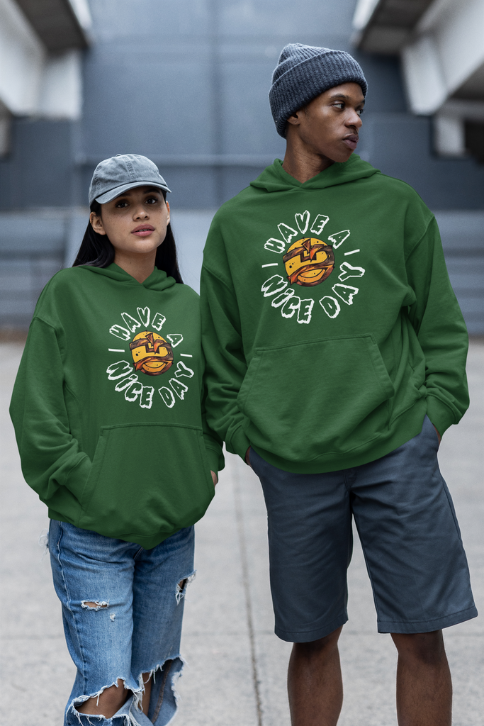Promote positivity and fashion with our Green Have A Nice Day Pullover Hoodie! Resist negativity - this hoodie serves as a reminder to stay resilient and joyful. Stay stylish and uplifted with this essential garment!