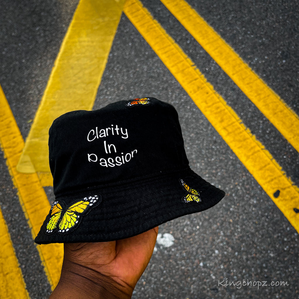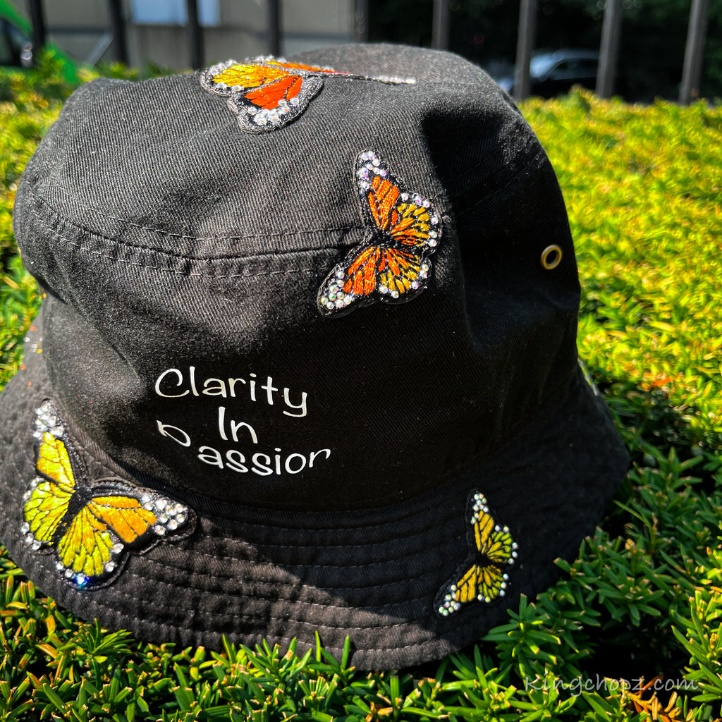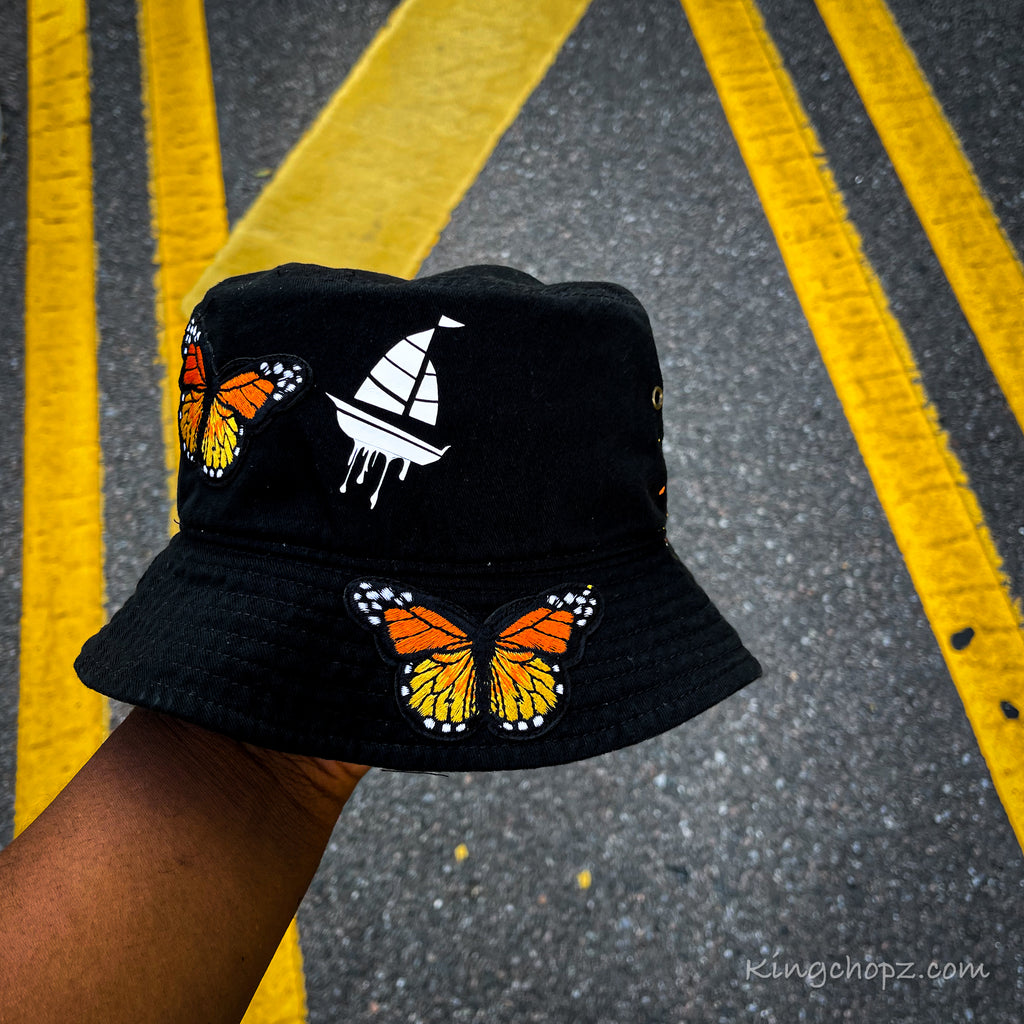 - Orange, yellow, white ,and black butterfly all over hat
