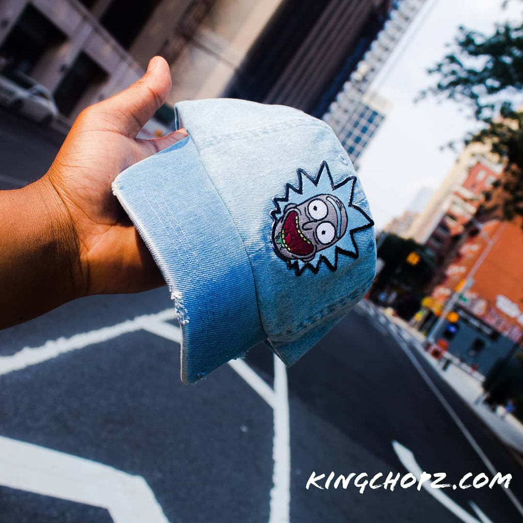 One of my favorite shows is Rick and Morty. I feel that Rick is on of the funniest characters ever. - Distressed jean grandad hat - One size fits most - Embroidered Rick character hand sewn on the center on - Summer wear Constructed of high-quality cotton denim, this hat is lightweight and breathable yet durable enough to keep you cool and shaded all summer long. It's designed with an adjustable strap for the perfect fit for your head.- Distressed jean grandad hat