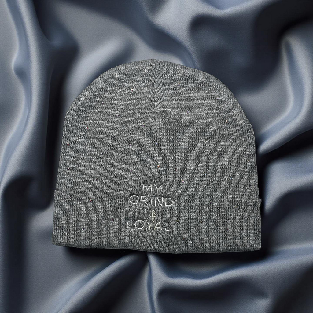 Keep warm in style with the limited edition "ASH GRIND IS LOYAL" hat. The lavish diamonds add a touch of luxury to this versatile piece that is suitable for all sizes. Stay cozy and chic with this must-have accessory.